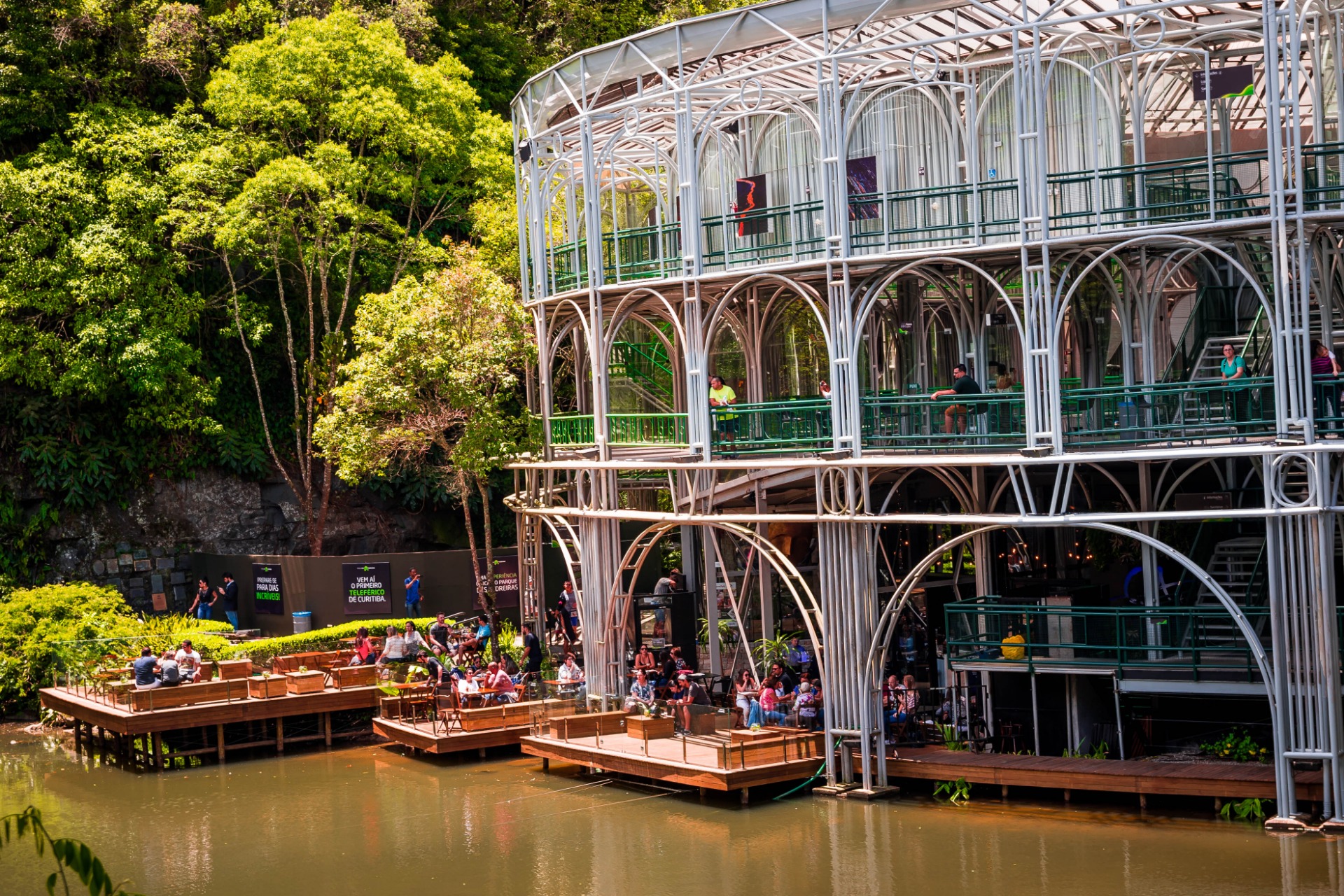 O teatro Ópera de Arame é parada obrigatória para os turistas que visitam Curitiba. Mas poucos sabem que dentro do local existe o restaurante Ópera Arte que, além de lindinho e à beira lago, conta com um palco flutuante com diversas apresentações de bandas musicais. No dia que fui, estava tocando uma banda de jazz e percussão chamada Mumbai Express...